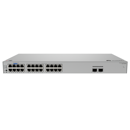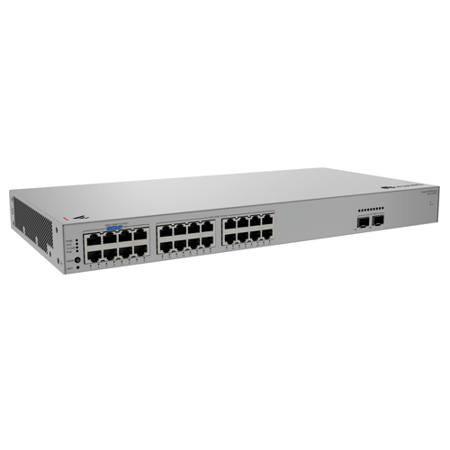 Huawei S210-24P2J is a reliable managed cloud L2 PoE switch with a switching capacity of 58Gbps, 24x Gbit PoE+ ports and 2x 2.5G SFP slots. The RJ45 ports support PoE+ with a 400W budget. It supports management via a local web interface as well as cloud management (eKit SNC / eKit mobile app). The maximum power consumption is 32.4W (without PoE load).