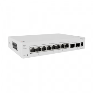 Huawei S210-8T2J is a reliable managed cloud L2 switch with a switching capacity of 26Gbps, 8x Gbit ports and 2x 2.5G SFP slots. It supports management via a local web interface as well as cloud management (eKit SNC / eKit mobile app). The maximum power consumption is 10.9W.