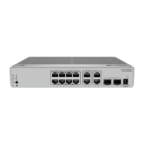 Huawei S310S-4P8UN2X is a reliable managed cloud L2+ PoE switch with a switching capacity of 88Gbps, 4x Gbit PoE+ ports, 4x 2.5G PoE+ ports, 4x 2.5G PoE++ ports and 2x SFP+ slots. It supports management via a local web interface as well as cloud management (eKit SNC / eKit mobile app). The maximum power consumption is 25.9W (without PoE load).