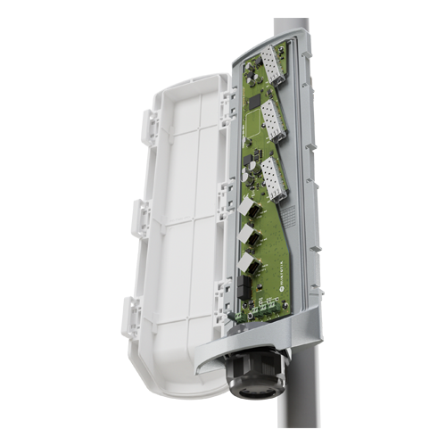 Cut the cable clutter – extend power and fiber together, anywhere – with a single hybrid cable. At the far end, the GPERx6 splits it all neatly: SFP+ for further long-distance uplinks, PoE-out for powering other switches or access points, and DC outputs for IoT gear or specialized devices. GPERx6 a rugged, outdoor-ready switch that cuts cable clutter and keeps deployments simple.
