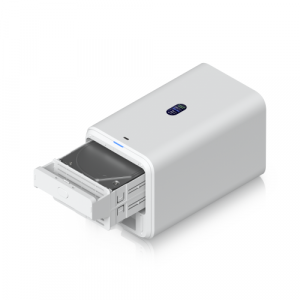UniFi Network Attached Storage with 2x 3.5″ HDD bays, 2.5GbE networking, USB-C connectivity, and an included PoE++ adapter, all in a compact footprint. Powered by a quad-core ARM Cortex-A55 processor, complemented by 4GB of RAM. Package Content: Device, 60W PoE++ adapter.